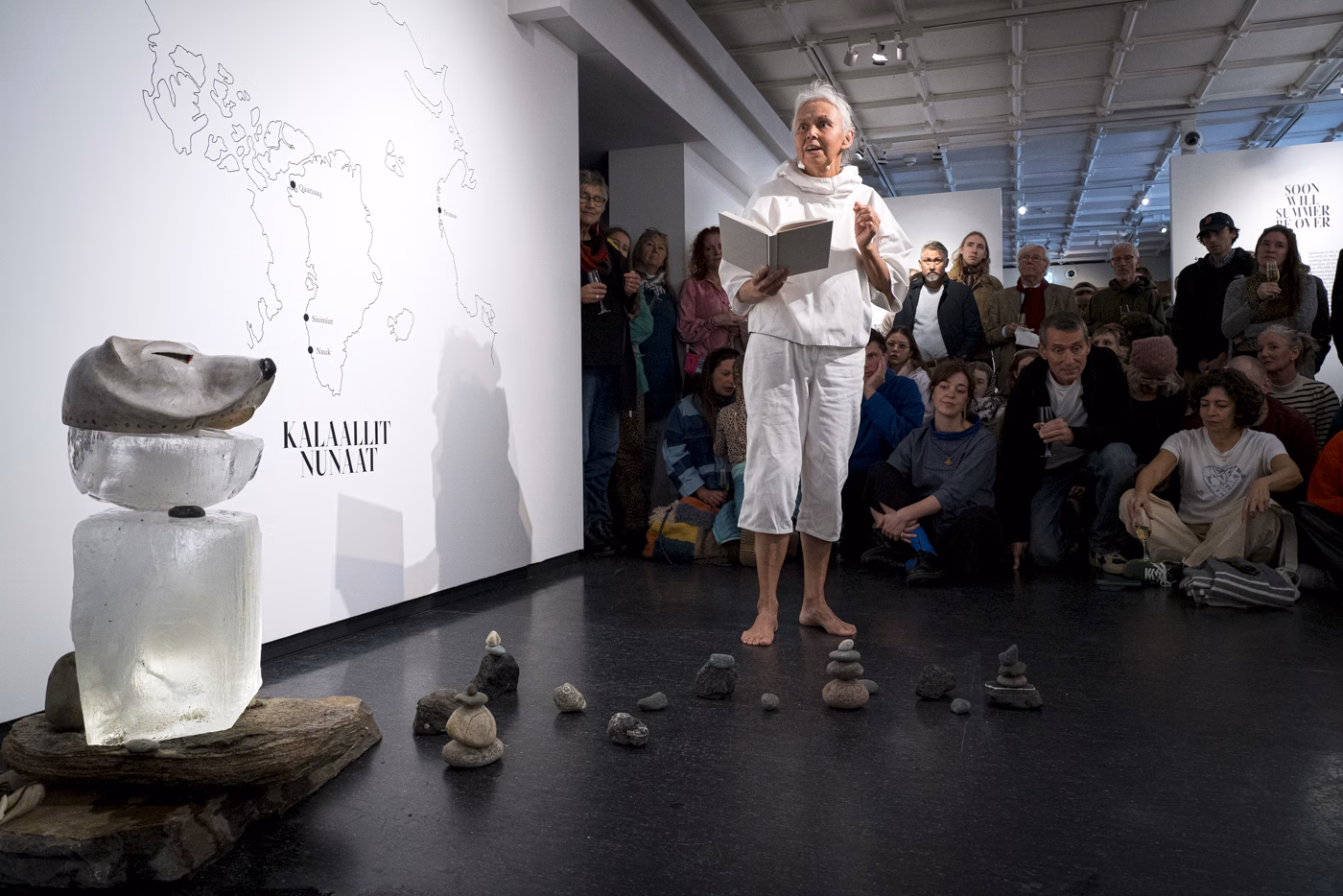 The opening on Saturday was preceded by a performance by artist Louise Fontain. Fontain lives in Hattfjelldal, but was born in the same town as Inuuteq Storch, Sisimiut in Kalaallit Nunaat/Greenland. She was taken to Denmark at the age of 9 as part of a controversial Danish educational experiment, and like Storch, she constantly moves home through the art she creates. Her performance was specially created for the exhibition, and was entitled “Towards Home”.