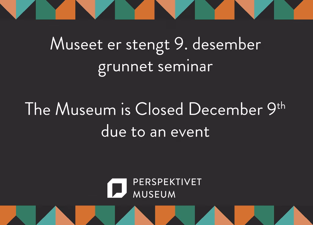 Museet er stengt: 1. nyttårsdag, Langfredag, 1. mai, 17. mai, julaften og 1. og 2. juledag.