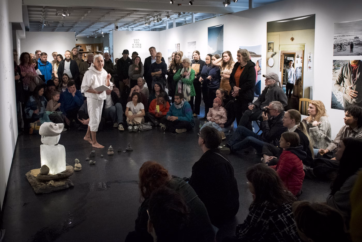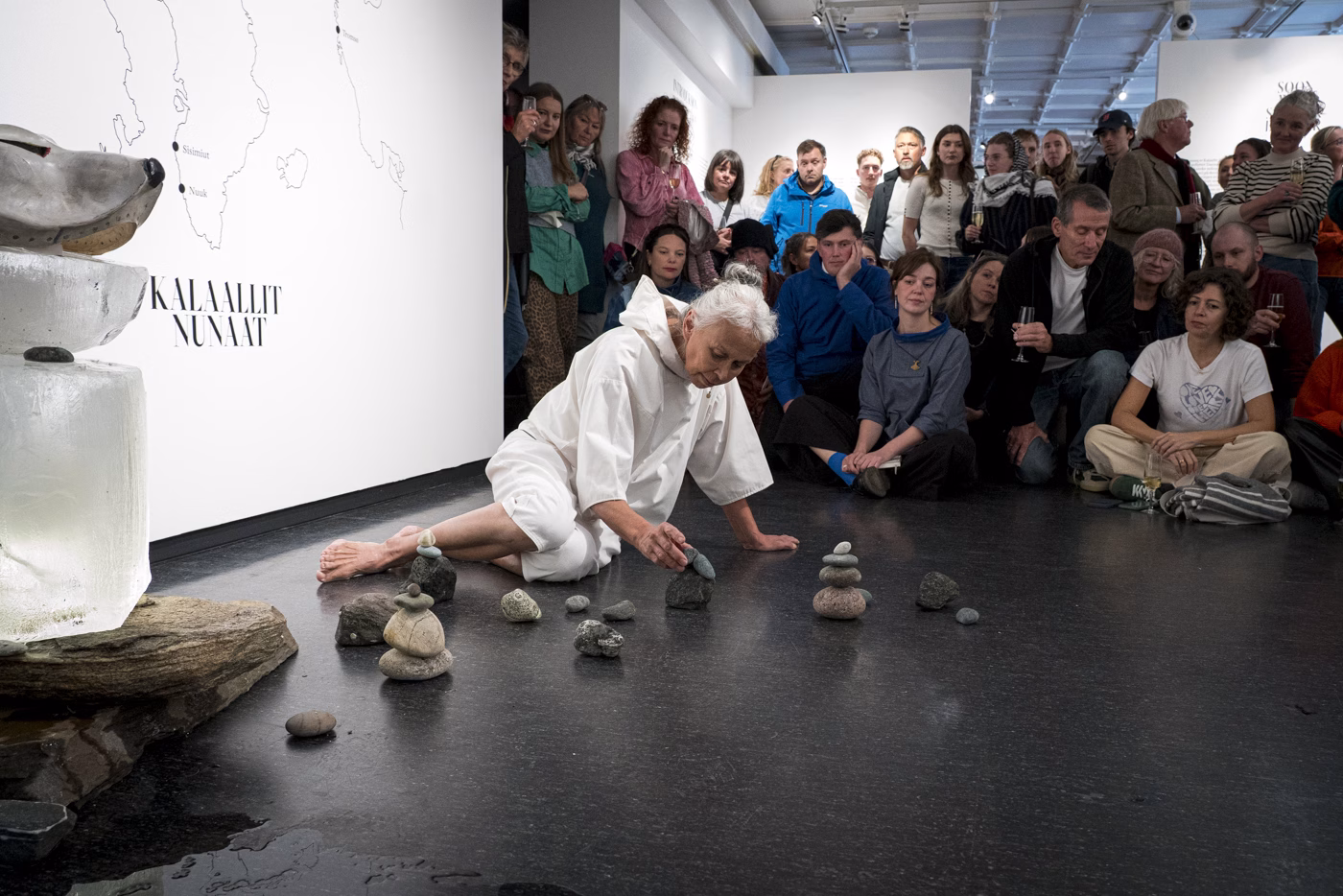 Åpningen lørdag ble innledet med en performance av kunstneren Louise Fontain. Fontain er bosatt i Hattfjelldal, men født i samme by som Inuuteq Storch, Sisimiut i Kalaallit Nunaat/Grønland. Hun ble tatt til Danmark som 9-åring som del av et omstridt, dansk utdanningseksperiment, og i likhet med Storch beveger hun seg hele tiden hjem gjennom kunsten hun skaper. Hennes performance var spesiallaget til utstillingen, og hadde tittelen «Mot hjem».