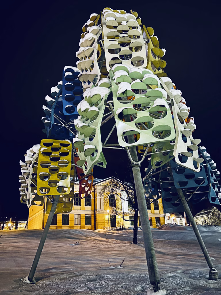 I tillegg til omvisning, prosjektarbeid og dialog på Perspektivet Museum, fikk deltakerne en vandring i Tromsø med presentasjon og samtaler rundt de nye kunstverkene i Storgata, Krykkjehotellet utenfor Kunstforeningen og Tromsø Observatorium.